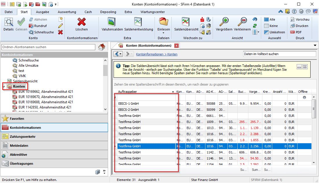 Mit Patch 24.01 funktioniert der Aufruf des Kontos in der Saldenübersicht "Konten" mittels Doppelklick nicht.