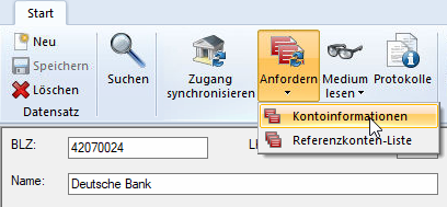 | Wird hier die falsche BIC mit "XXX" am Ende angezeigt, so müssen sie Kontoinformationen über Menüpunkt "Anfordern" aktualisiert werden. |