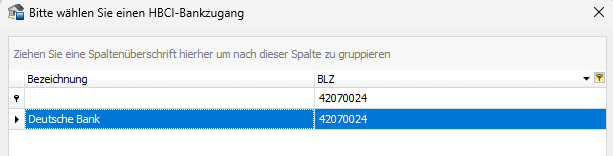 Die entsprechende BLZ selektieren: