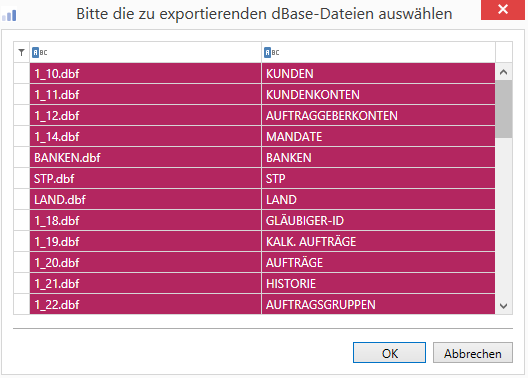 - Wählen Sie die Option Profi cash dBase-Dateien exportieren