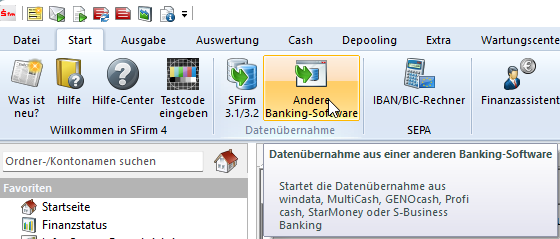 - Wechseln Sie auf das Register Start, Datenübernahme, Andere Banking-Software