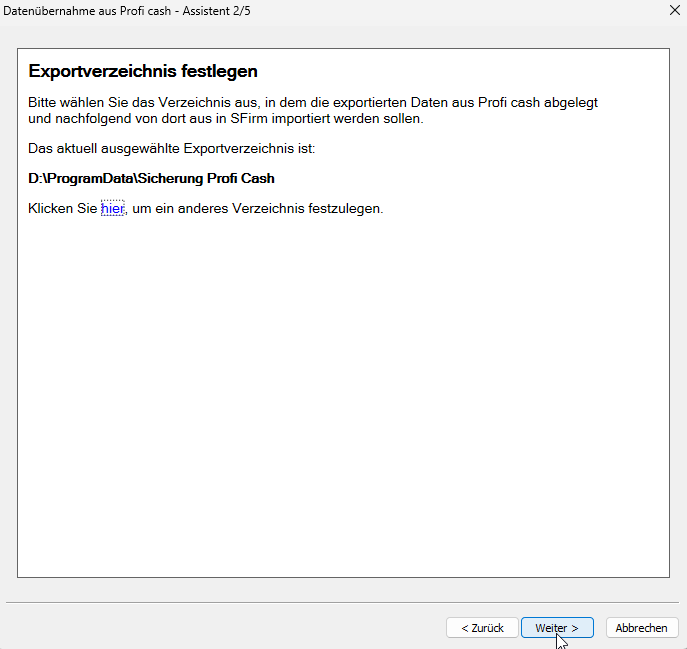 - Wählen Sie das Verzeichnis aus, welches Sie beim Export aus Profi cash angegeben hatten